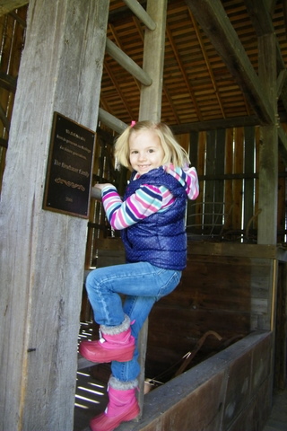 In addition to mean looking cows, we got see some fresh little lambs. One of the three was baaing like crazy the whole time we were in the barn. They were sweet, but loud! We also got to see horses, goats and pigs.My little monkey...climbing up the ladder to no where, but she didn't care. Probably not safe or legal, but who's to say. You might be wondering why my children are wearing snow boots in April and I've got a good answer for you. MUD. It's everywhere here because it's done nothing but rain. Surprisingly it wasn't too bad at the park, but we figured better safe then sorry.